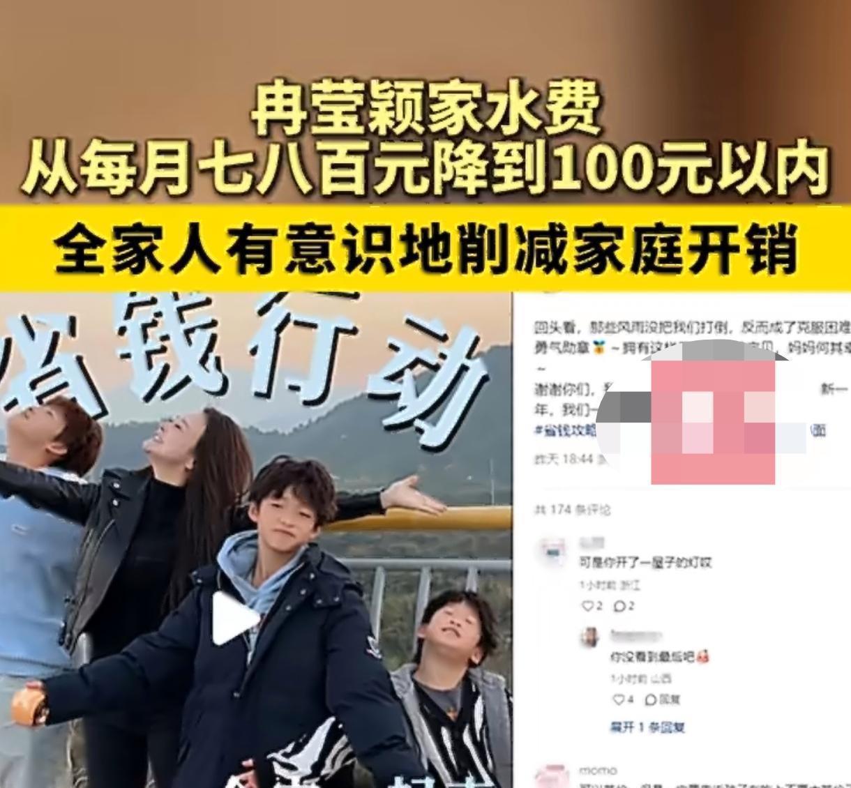 冉莹颖这波家庭节俭分享也太接地气了!1日她发视频说,以前冬天一家水费每月要花七八百,现在靠全家努力控制块以内,直接省%%,网友看了都忍不住点赞。要知道她家有三个孩子,加上夫妻二人,一家五口的日常用水本就不少。之前每月七八百的水费,放在普通家庭也算是笔不小的开支,能降到百元内,可见是真的下了功夫。