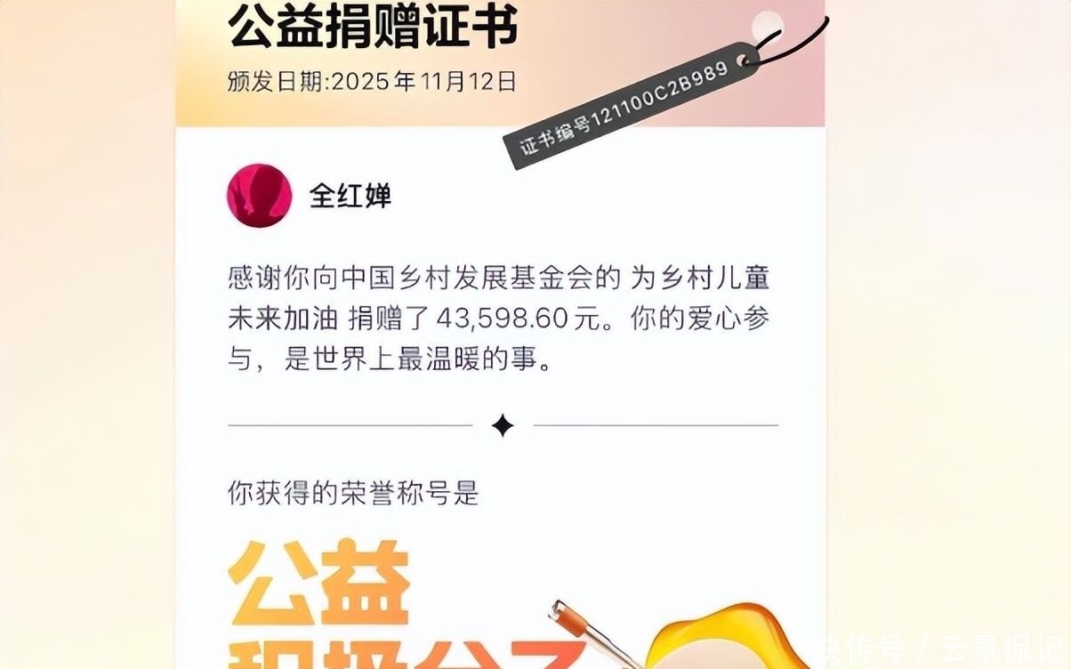 基金会特意授予她“公益积极分子”荣誉证书,她并未张扬,仅悄悄拍照留存手机相册。直到机构公开致谢名单,外界才得知此事。